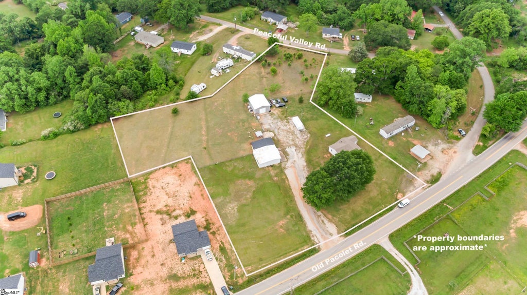 Discover the perfect blend of modern convenience and rural charm in this completely remodeled 2-bedroom, 1-bathroom home. An open-concept living and dining area provides an inviting space for relaxing or entertaining. The brand-new kitchen features sleek granite countertops and a high-quality range hood that vents to the outside, while a separate laundry room offers additional storage. This home has been meticulously upgraded with new plumbing, electrical, and HVAC systems, ensuring peace of mind. Nestled on 2.43 unrestricted acres, this property offers an exceptional opportunity for future development with 263 feet of frontage on Old Pacolet Road and an additional 106 feet on Peaceful Valley Road. Currently a small hobby farm, the property includes a large outbuilding, a fenced-in chicken coop, and a separate fenced area for a small herd of sheep. A spacious metal garage/workshop with its own bathroom is perfect for car enthusiasts or anyone in need of a functional workspace. The car lift in the garage will not convey with the property. Whether you dream of expanding, farming, or simply enjoying a serene lifestyle, the possibilities are limitless. Schedule your showing today and explore all that this versatile property has to offer!
