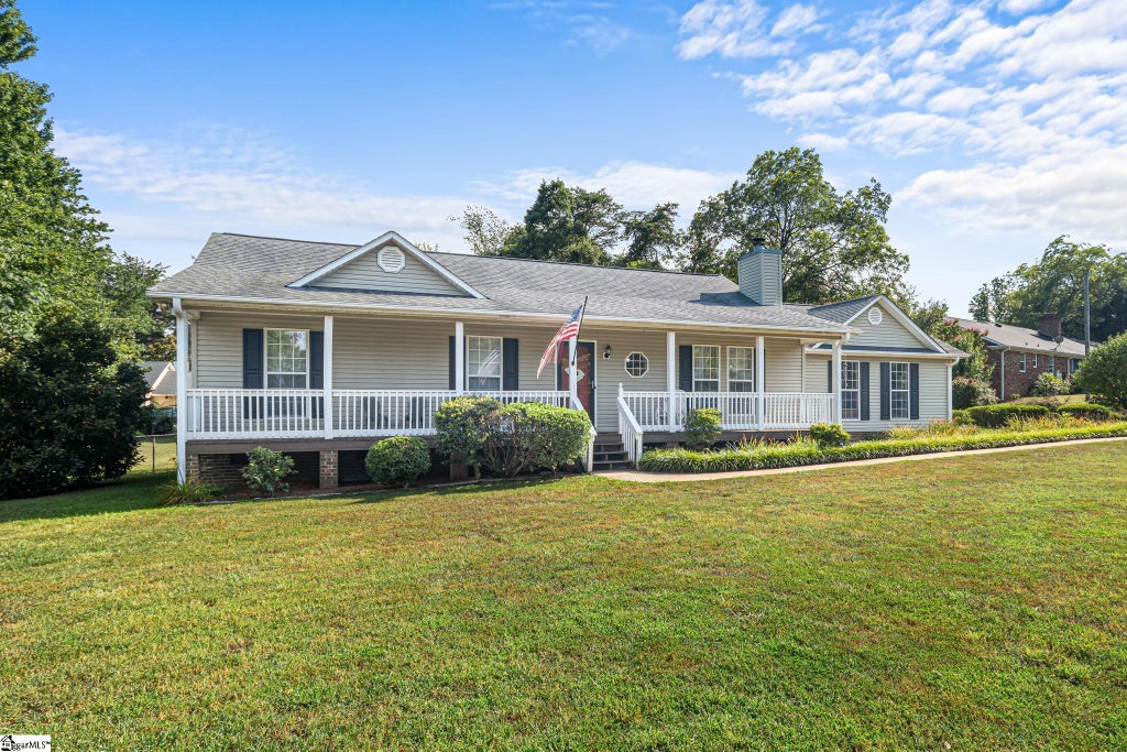 Tucked into the foothills of Paris Mountain, this charming 3 bedroom, 2 bath home offers a blend of simplicity & space with no HOA to limit your vision. A deep front porch welcomes quiet mornings, while the expansive back deck sets the stage for gatherings, grilling, or unwinding beneath the trees. The home rests on a generous, level lot with mature landscaping, creating a peaceful, natural backdrop including a powered outbuilding complete with electricity and air conditioning currently being used as a craft room. Inside, the home offers a comfortable layout ready for your updates and personal touch. Soaring vaulted ceilings and abundant natural light create a warm, welcoming atmosphere. Some notable updates include updated appliances, new flooring in all bedrooms and a step-in bathtub along with additional water heater. Outside, the 2 car garage and the wide driveway provides ample parking and convenience. Positioned minutes from Paris Mountain State Park, downtown Travelers Rest, Cherrydale Point and Bob Jones University you're never far from nature, culture, or convenience. Schedule your showing today!