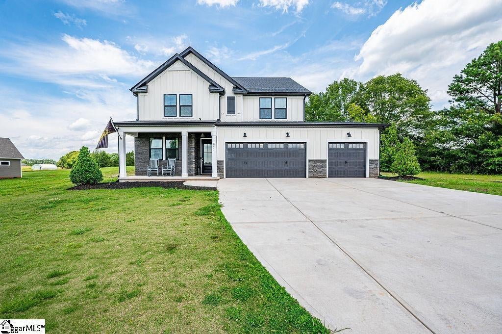 Welcome to 2847 Lebanon Road in charming Pendleton! This stunning 5-bedroom, 3.5-bath home sits on a full acre, offering both privacy and space to grow. Built in 2022, this floor plan features a thoughtful design with a first-floor primary suite, a versatile flex room, and an open-concept living area perfect for entertaining. The gourmet kitchen boasts stainless steel double ovens, a wall microwave, and a spacious café area overlooking the family room. Upstairs, you’ll find a loft plus four additional bedrooms, providing plenty of space for family, guests, or a home office. Outside, enjoy the charm of farmhouse-inspired architecture with durable composite siding, a 3-car garage, and a level backyard ready for your personal touch—whether it’s a pool, garden, or outdoor living space. Located just minutes from historic downtown Pendleton, Clemson University, and I-85, this home offers the perfect blend of country living with easy access to shopping, dining, and top-rated schools.