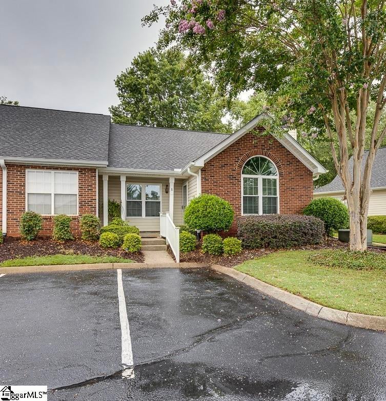 Enjoy the ease of single-level living in this beautifully designed townhome, ideally located near Riverside High School, GSP airport, medical facilities, and major highways—making daily life incredibly convenient. Even better, it’s just a short walk to a grocery store, restaurants, and other neighborhood shopping, giving you everything you need right at your fingertips. Inside, an open floor plan offers a warm and inviting layout, perfect for both relaxing and entertaining. The windows have been recently updated, and the cozy fireplace adds charm and comfort, while the kitchen features generous cabinet space, granite countertops, and the functionality a home cook will appreciate. Step out back to a covered porch overlooking a private, fenced yard—ideal for pets, gardening, or simply unwinding with a good book and a cup of coffee. It’s your own quiet space to enjoy the outdoors, rain or shine. The primary bedroom includes an ensuite bath with an upgraded walk-in shower and multiple closets for storage and convenience. The secondary bedroom is thoughtfully connected to the hall bath with its own private access door, offering comfort and privacy for guests or family members. Whether you're downsizing, simplifying, or just looking for a low-maintenance home in a walkable, well-connected area, this rare townhome checks all the right boxes.