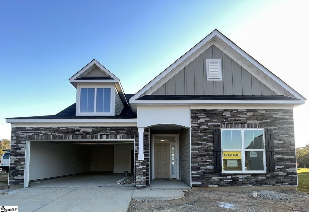 New construction. 5 bedrooms, 3 bathrooms, and a 2-car garage. A defined foyer leads into the home, passing two bedrooms and a dining room before reaching the open living area at the back. The kitchen features a built-in microwave/oven combination, gas cooktop, designer range hood, stainless steel dishwasher, quartz countertops, backsplash, LED lighting, and pendant fixtures. The family room is open to the kitchen and provides access to the main-level primary suite, which includes a tiled walk-in shower, dual sinks, a linen closet, and a large walk-in closet. Upstairs includes two additional bedrooms and a full bath. All bathrooms feature upgraded cabinetry, quartz countertops, and coordinated fixtures. Additional features include a rear patio, upgraded trim, lighting, and plumbing packages, structured wiring, a built-in pest control system, and a finished garage with drywall, paint, electrical outlets, and lighting. Community amenities include two pickleball courts.