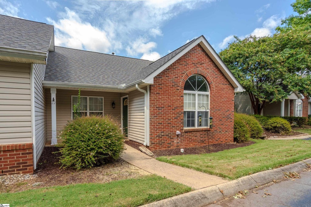 Gated convenience and no maintenance meets everyday comfort at Riverside Townes! This sought-after community offers single-story living just minutes from I-85 and walking distance to Lowe's Foods. This two-bedroom, two-bath residence is one of the few in the neighborhood with a two-car garage and a private fenced yard—rare features that set it apart. Inside, the open-concept layout showcases a cathedral ceiling, Palladian window, and gas log fireplace. Updates include new flooring, fresh paint, upgraded lighting, and stainless steel appliances. Washer and dryer also convey! The primary suite features dual closets and a private bath, while the screened porch and courtyard water feature create a peaceful retreat. Blending thoughtful updates with rare neighborhood features, this home offers a seamless balance of comfort, privacy, and convenience in one of the area’s most desirable gated communities. Don't miss out! HOA monthly regime fee is $185 and includes pest control, landscaping, waste pickup. Property tax amount shown represents 6% non-primary residence