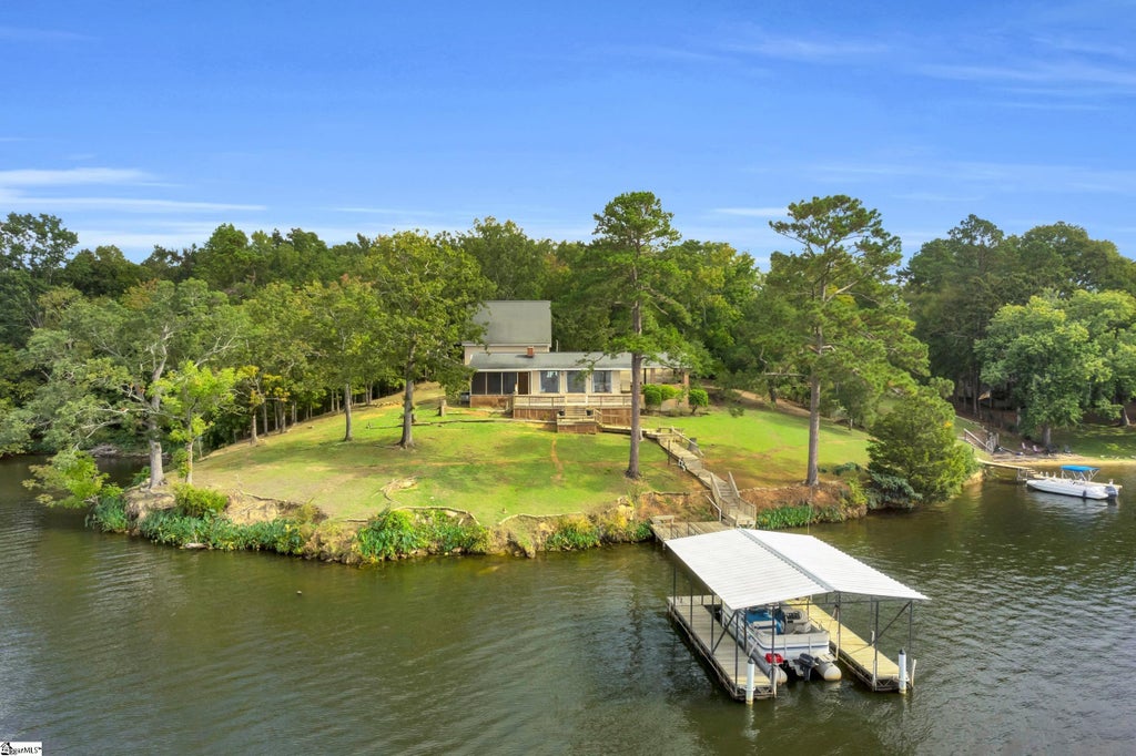 Welcome to 182 Lake Overlook Road — where lakefront living meets everyday comfort. Perfectly positioned on 1.58 acres with over 400 feet of deep-water frontage, this home captures unobstructed 180-degree views of Lake Greenwood that will take your breath away. The setting is peaceful, private, and convenient to everything — just minutes from Laurens, Greenwood, and an easy drive to Greenville. Inside, you’ll find a light-filled 2-bedroom, 2-bath layout designed to maximize the view from every angle. The open living and dining area flows seamlessly to a spacious lakeside deck, ideal for entertaining or relaxing after a day on the water. The screened porch off the primary bedroom is truly the showpiece — a dreamy spot to sip coffee, watch the sunrise, or unwind as the water sparkles below. Outside, your lake life dreams continue: a private stationary dock and floating dock with a covered slip make boating and swimming effortless. There’s plenty of space for toys, tools, or hobbies in the massive detached garage/workshop with an unfinished room above that could easily be converted into guest quarters or a studio. The attached 2-car carport adds everyday convenience. Whether you’re searching for a full-time residence, a weekend retreat, or a proven short-term rental investment, this property delivers. Acreage. Views. Dock. Workshop. Location. 182 Lake Overlook Road has it all — and lakefront opportunities like this don’t come around often.