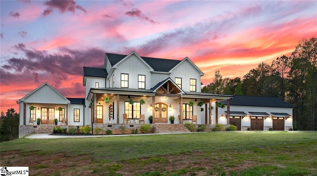 Welcome to 150 Smith Motors Road, an exquisite custom farmhouse situated on 68 gated acres. This impeccably crafted home blends timeless architectural charm with modern luxury, offering a refined retreat for those who value both comfort and elevated living. Every detail has been thoughtfully designed to deliver a lifestyle defined by elegance, quality, and purpose. As you approach, a grand wrap-around porch welcomes you with promises of peaceful mornings and evening relaxation. The exterior exudes craftsmanship, featuring stained mahogany doors and Texas brick skirting that hint at the attention to detail found throughout the home. Inside, hand-cut pine floors draw you through an expansive layout. The chef’s kitchen is a showpiece, equipped with top-of-the-line Jenn-Air appliances, an oversized island with quartz countertops, and a hidden refrigerator built seamlessly into custom cabinetry. A wet bar with a wine cooler and built-in wine rack adds to the ambiance, while antique European-style doors open to a walk-in pantry prep area complete with butcher block counters and additional custom cabinetry. The formal dining room is ideal for entertaining, while the home office offers a quiet retreat with sweeping views of the rolling landscape. In the great room, soaring ceilings with Douglas fir beams and a dramatic floor-to-ceiling brick fireplace create a stunning focal point. French doors invite you out to a spacious patio, perfect for enjoying panoramic vistas and seamless indoor-outdoor living. The main-level primary suite is a private haven, featuring vaulted pine ceilings, a cozy fireplace, a large custom walk-in closet with a built-in folding station, and a spa-inspired ensuite with dual vanities, a rainfall shower, and a pedestal tub tucked beneath warm wood ceilings. The laundry room is as functional as it is stylish, complete with two washers and dryers, a dog wash station, custom cabinetry, and durable brick flooring. Upstairs, a large loft and four spacious bedrooms provide ample room for family and guests. Two of the bedrooms offer en-suite baths, and all enjoy beautiful views of the surrounding countryside. Built for peace of mind, the home includes a whole-house backup generator and high-end systems designed for self-sufficient living. Outside, the estate transforms into a private resort. An oversized patio wraps around a stunning pool with a tanning ledge, while a covered porch and outdoor fireplace set the stage for evenings under the stars. The land is rich with opportunity, whether you're tending cattle in fenced pastures, gathering eggs from the chicken coop, or harvesting from raised garden beds. A separate second residence with an oversized shop expands the possibilities. This flexible space includes three bedrooms, two bathrooms, a half bath in the garage, three oversized garage doors, and a massive concrete pad. It is ideal for guests, multigenerational living, a home business, or potential Airbnb income.