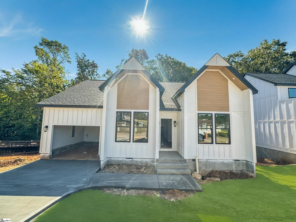 Welcome to 120 Lyman Avenue — a beautifully crafted modern craftsman home just minutes from City of Greer and Spartanburg, where city convenience meets refined comfort. With nearly 1,554 square feet of thoughtfully designed living space, this home perfectly balances open-concept flow with private retreats, ideal for both entertaining and unwinding. Step through the front door flooded with natural light, and into an inviting open floor plan designed for connection. The chef-inspired kitchen features stainless steel appliances, a quartz-topped island, and a designer tile backsplash—all seamlessly blending style and function. The great room, anchored by a modern fireplace, brings the spaces together, while the adjoining great room overlooks the backyard for relaxed meals or morning coffee. Prefer to dine outdoors? Step onto the covered back porch and enjoy the peaceful setting. The private owner’s wing feels like a true retreat, with tall ceilings, a walk-in closet, and a spa-like bath featuring dual vanities and a stunning shower with dual shower heads and a rainfall feature. Two additional bedrooms each offer custom-built closets for plenty of storage. A conveniently located laundry room and a beautifully designed full bath complete the upper level. Set on a level 0.20 -acre lot, this home pairs curb appeal with practicality, featuring low-maintenance concrete plank siding, luxury vinyl plank flooring, and quartz countertops throughout. Just a few miles from Duncan, Downtown Spartanburg or Greer you’ll be moments from lively restaurants, shops, and entertainment, yet still enjoy a quiet, residential setting. The home is a short walk away from Tyger River Park, Beech Springs Landing and Tygerberry Landing just minutes away. With its timeless design, elegant finishes, and unbeatable proximity to everything Greenville has to offer, 120 Lyman Avenue is more than a home—it’s a lifestyle. Use of preferred lender provides Buyer closing cost concessions. At time of listing all punch-list items remain, including paint touch up, glass shower doors, mirrors & bathroom accessories to be installed. Schedule your showing today and experience Duncan living at its finest!