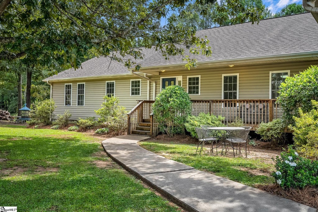 RARE opportunity in GREAT LOCATION!! This 3 bedroom, 2.5 bathroom, FULL BASEMENT home sits on OVER 2 ACRES of unrestricted land in awarding winning Anderson School District 1. When you arrive, you are welcomed to an oversized garage with breezeway to a rocking chair front porch overlooking privacy trees in the front. This corner lot expands to Von Hollen Road on one side, feet from the neighbor's home on the other side, and back into the woods - including the fire pit area and chicken coop. This home is move-in ready with a BRAND NEW 30 year architectural shingle ROOF and BRAND NEW luxury vinyl plank spanning the living area, kitchen, and bathrooms. This is a great opportunity to expand with over 1,900 square feet of unfinished space in the basement with a laundry area, plumbing installed for bathroom, electrical, and interior framing in place. When you enter the home, there is guest bathroom to the right and an entryway opening to the living area with eat-in kitchen. This home embraces the beautiful, private backyard with sliding glass doors from the living room, owner's suite, and the back bedroom. The split floor plan offers a large owner's suite with a spacious walk-in closet and bathroom with jetted garden tub, walk-in shower, and toilet closet. Opposite side of the home are 2 bedrooms and a long hallway with cabinetry area for storage, a full bathroom, and large walk-in closet. The first bedroom is over 18' long with a sitting area and the back bedroom is over 15' with beautiful views of the backyard. In the heart of the home, there is a finished staircase leading to the unfinished basement expanding the size of the upper level. The basement is well insulated with sliding glass doors leading to a patio and offers ample spaces for storage, lounging, gaming hobbies, and more. This home is conveniently located to all dining, shopping, and medical offices in Easley - JUST 2 miles to Highway 153 and less than 5 miles to Calhoun Memorial Highway / Hwy 123. Enjoy festival, outdoor entertainment, and shopping local with a quick 14 minute drive to downtown Easley and the Silos and 16 drive minute to downtown Greenville. This house went off market for a couple months with updates made during this time.
