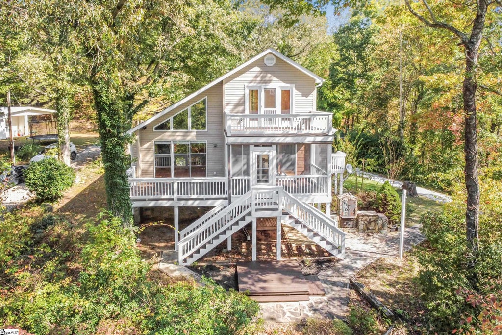 Tucked away in the charming town of Cleveland, SC, this beautifully maintained mountain home offers the perfect blend of modern updates, peaceful privacy, and breathtaking natural surroundings. Nestled among mature trees and blooming rhododendrons, this 3-bedroom, 2-bath retreat sits on a private mountain lot with stunning views of Table Rock right from your master bedroom. Step inside to a bright, open-concept living area filled with natural light and framed by large windows that invite the outdoors in. The interior has been thoughtfully updated throughout — including new paint (2022), lighting, fans, and appliances — giving the home a fresh, modern feel. Recent upgrades include: -New HVAC system and ductwork (2022) -Updated kitchen with freshly painted cabinets, new faucet, and newer appliances — refrigerator (2022), microwave (2023), and stove (2024) -Bathrooms partly remodeled with new toilets, sinks, and mirrors All decks and stairs freshly painted and stained (2025), with upper deck wood being replaced, and replaced screens on the screened porch Fenced-in play area (2023) — ideal for children, pets, or even a vegetable garden Enjoy your morning coffee or unwind in the evenings on the screened porch or one of the spacious decks, soaking in the sounds of nature and the views of Table Rock glowing at sunset. The detached shed offers two workspaces and a carport — perfect for extra storage, a workshop, or RV parking. With no HOA, you have the freedom to garden, raise chickens, or simply enjoy your land! Outdoor lovers will appreciate being just minutes from Table Rock State Park, Jones Gap, Caesar’s Head, Cat Falls, and Bald Rock, plus easy access to Lake Holiday, Lake Jocassee, and Lake Keowee. Despite its tranquil mountain setting, the home is conveniently located — only 20 minutes to Travelers Rest, 35 minutes to Greenville, and under an hour to Asheville. Saluda River and Tall Pines Lake are within a short distance. Experience the serenity, adventure, and comfort this mountain home has to offer — the perfect escape from the everyday. This home would not only make a serene primary residence, but boundless potential as a short-term rental!