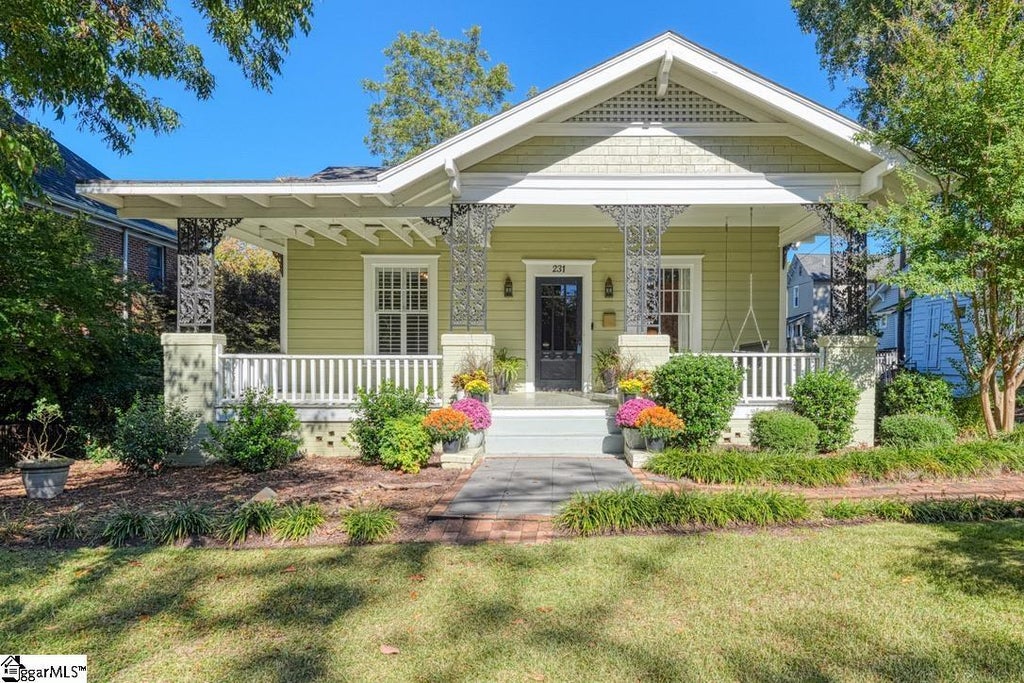 Charming bungalow living in the heart of Spartanburg! Located directly across from Converse College and just minutes from downtown, this 3 bedroom, 2 bathroom home blends classic charm with everyday convenience. Enjoy the spacious front porch—complete with a ramp for added accessibility—before stepping inside to a welcoming living room featuring a cozy gas log fireplace. The living room flows seamlessly into the bright and airy dining room, highlighted by large windows that fill the space with natural light. The primary suite features its own full bathroom with a walk-in shower, while the additional bedrooms are ideal for family, guests, or a home office setup. A second full bathroom adds everyday convenience. The kitchen features solid surface countertops and leads to a generous back deck, perfect for entertaining or relaxing. The fenced-in backyard includes a powered shed, offering plenty of space for storage, hobbies, or a workshop. An unfinished basement provides even more storage space and potential. Don’t miss your opportunity to own this well-loved home in one of Spartanburg’s most walkable and vibrant areas!