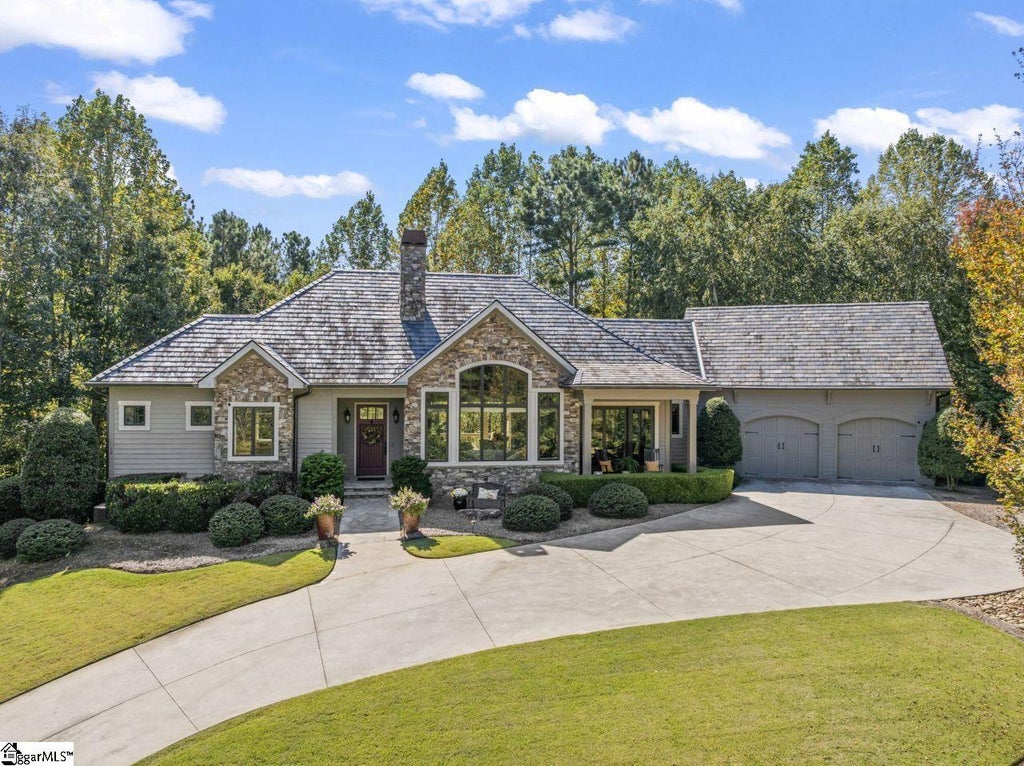 Perched high in Old Edwards Reserve at Lake Keowee, 120 Golden Bear captures the essence of mountain living, where timeless design meets effortless comfort. This home offers a Sports Level Membership, which can be upgraded to Premier Level if desired. Situated on one of the community’s higher-elevation lots, this stunning home captures breathtaking sunrise views over the mountains and offers convenient access to all amenities—just a quick golf cart ride away. Step inside and be greeted by natural light streaming through oversized windows at both the front and back of the home. The open floor plan allows for a seamless flow between the great room, kitchen, dining area, and hearth room. The spacious great room features a stacked-stone fireplace framed by stunning mountain views beyond. In the newly renovated kitchen, you’ll find a larger island, granite and quartz countertops, a Wolf gas range, wine cooler, double-door oversized refrigerator, deep sink with new faucet, retrofitted cabinet with pull-out mixer storage, and a walk-in pantry. The spacious primary suite is a true retreat, offering a quiet space to relax, a spacious double vanity in the bath, and a walk-in closet outfitted with custom built-in shelving for effortless organization. The hearth room, with its stone fireplace, offers an inviting space for entertaining or a quiet spot to enjoy peaceful wooded vistas. The main level also includes an extended grilling deck, a laundry room with built-in sink and cabinetry, and an oversized two-car garage with golf cart storage. Downstairs, the 9-foot ceilings and open layout continue, with a spacious recreation room, wet bar, and refrigerator—ideal for hosting friends and family. The lower level offers a private ensuite guest bedroom, an additional bedroom with bath, and a flex room perfect for a gym, office, or playroom. Step outside to your fenced private backyard oasis. A gentle waterfall adds a serene, natural touch to the landscape, creating the soothing sound of flowing water and enhancing the property’s tranquil ambiance. The outdoor area is complete with a covered patio and a flagstone path leading to a large fire pit, where you can enjoy cozy evenings surrounded by quiet woods. The current owners have made numerous upgrades, including but not limited to: Installed a whole home Generac generator (2022); renovated the kitchen (2023); renovated Hearth room (2023); enlarged grilling deck off kitchen and added steps leading down to the back yard(2021); Installed 3 level waterfall, flagstone steps and pathway in backyard (2022); New A/C installed for first floor (2024); Installed Versa Lift for direct attic access (2021); Refinished main floor wood floors (2024); Repainted interior walls (2022); Fenced in backyard (2021) and more! A whole list is available in the supplements section of the listing. A complete list is available in the supplements section of the listing. This home’s exterior is nearly maintenance-free, featuring Hardie Plank siding, a slate shingle roof, and a full sprinkler system. Experience the perfect blend of mountain serenity, luxury living, and community connection at 120 Golden Bear—your next chapter begins here. A membership must be purchased at closing, providing access to world-class amenities, including a Jack Nicklaus Signature Golf Course, a state-of-the-art clubhouse, a resort style swimming pool, a marina, tennis and pickleball courts, a fitness center, and multiple dining options.