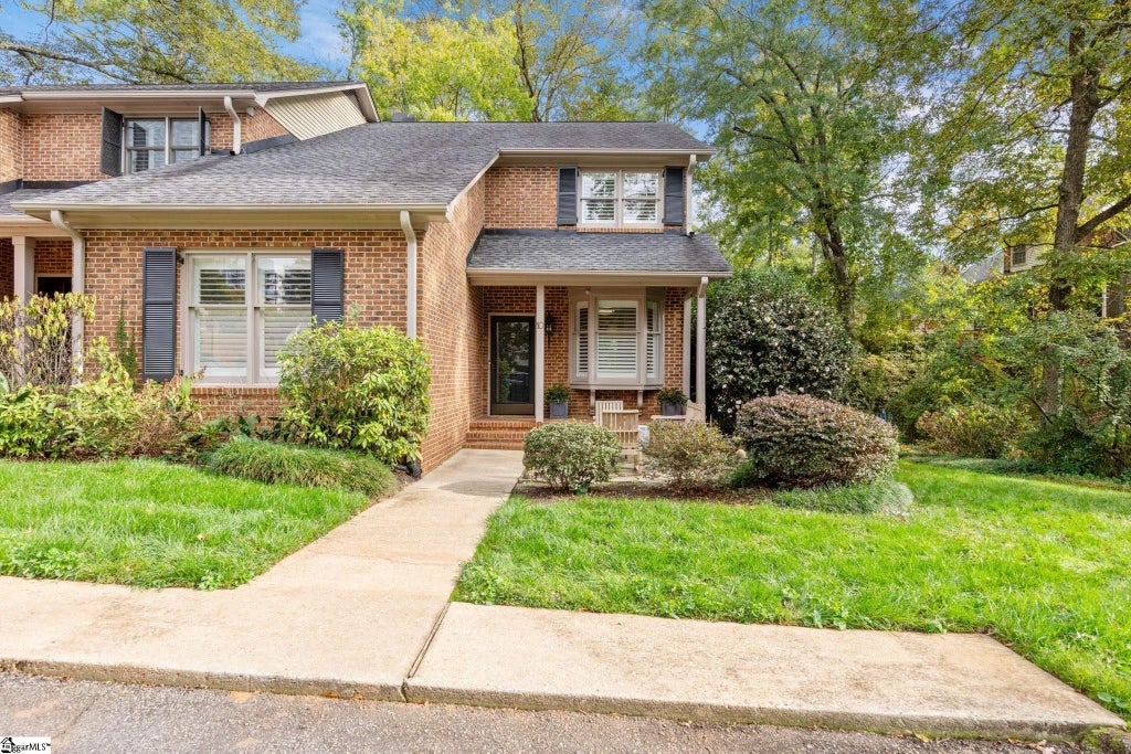 Tucked in a tranquil, creekside setting just steps from downtown Greenville's restaurants, shops, and entertainment, this beautiful townhome blends comfort, character, and convenience. Bright, light and showcasing gleaming hardwood floors, the main level offers an ideal flow for entertaining. The galley-style kitchen features granite countertops, stainless appliances, and opens naturally to the dining and living areas, perfect for hosting family and friends. A cozy gas-log fireplace and wet bar enhance the inviting ambiance, while the light-filled sunroom overlooks the creek and opens to a brand-new Trex deck for easy indoor-outdoor living. Every room in this home feels generous and airy, from the spacious living and dining areas to the large bedrooms that provide comfort and versatility. The main-level bedroom and full bath provide flexibility and could easily serve as a convenient primary suite. Upstairs, the grand second primary bedroom includes a large walk-in closet, dressing area, and private bath, while another bedroom with its own bath ensures comfort for guests. A true rarity in downtown townhome living, this home offers exceptional outdoor space, from the charming front porch and stone patio to the generous deck and serene creekside backdrop. The HOA maintains the lawn and grounds, so you can enjoy the beauty of a park-like setting without lifting a finger. Whether you're hosting friends or savoring a quiet morning coffee, there's room to relax and enjoy every season.